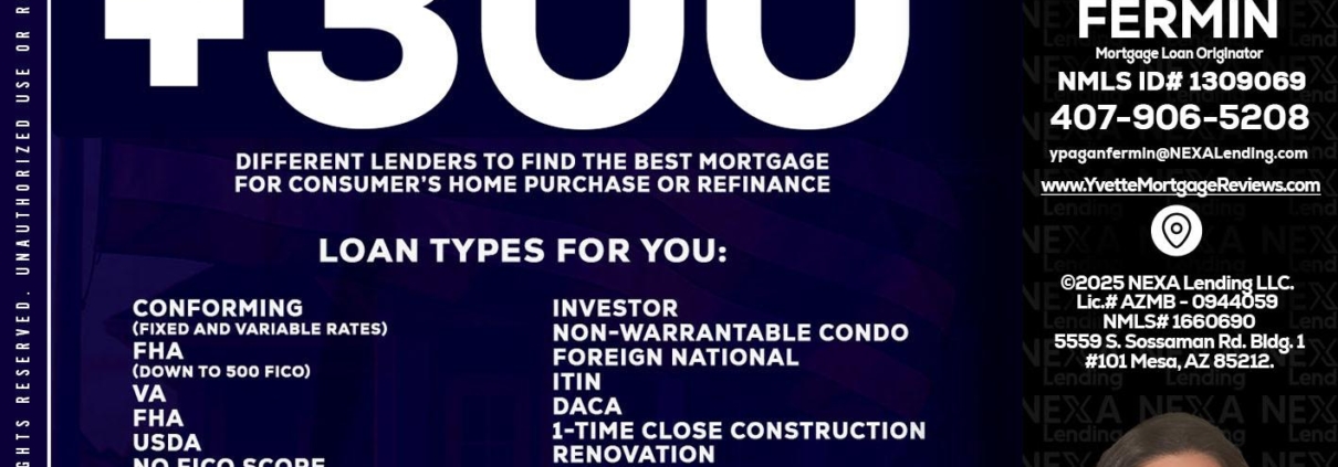 Hi, my name is Yvette Pagan Fermin. I’m a Loan Officer with NEXA Lending LLC., offering personalized mortgage solutions, fast customized quotes, great rates and service with integrity.