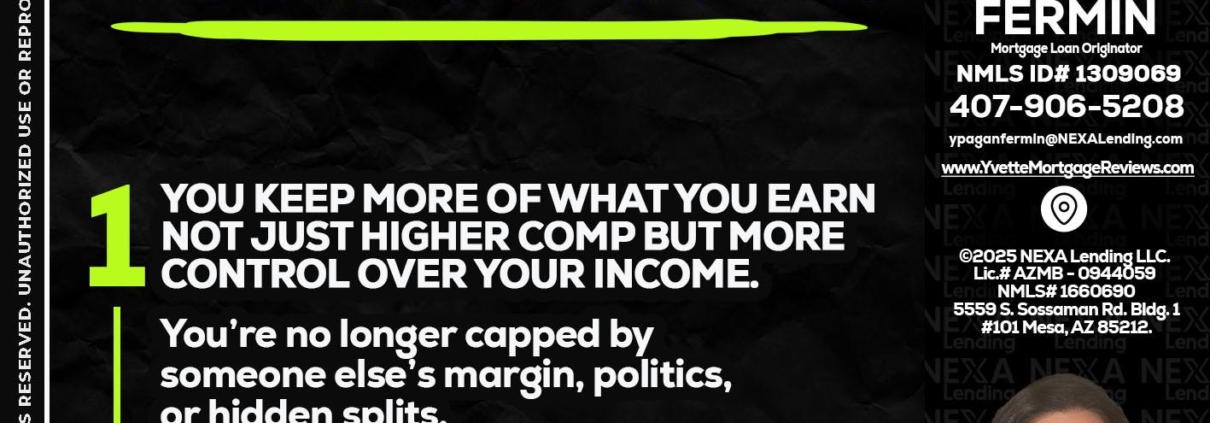 Hi, my name is Yvette Pagan Fermin. I’m a Loan Officer with NEXA Lending LLC., offering personalized mortgage solutions, fast customized quotes, great rates and service with integrity.