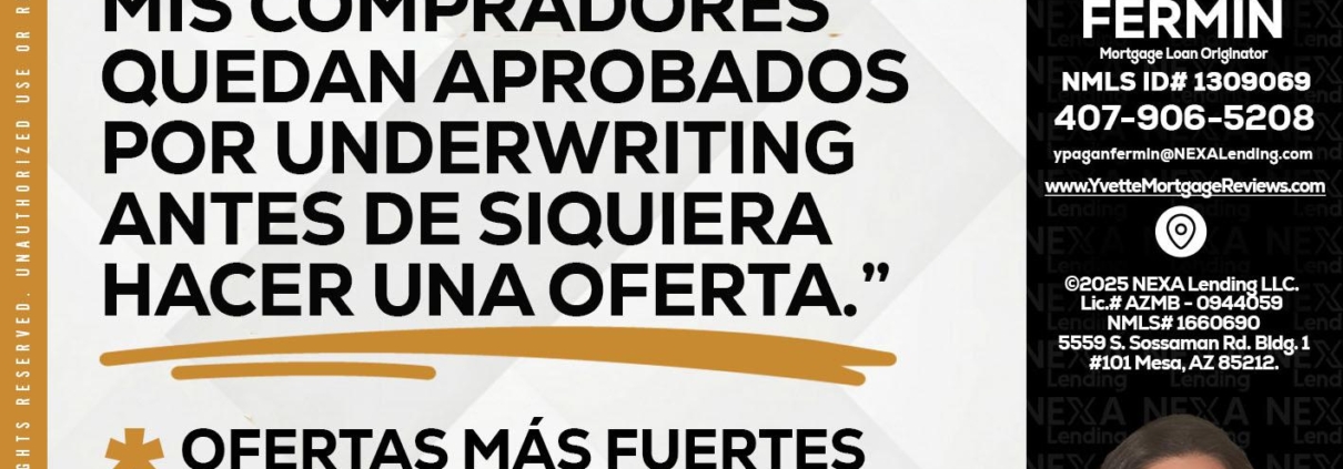 Hi, my name is Yvette Pagan Fermin. I’m a Loan Officer with NEXA Lending LLC., offering personalized mortgage solutions, fast customized quotes, great rates and service with integrity.
