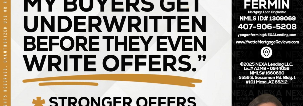 agents - Yvette Pagan Fermin -Loan OfficerHi, my name is Yvette Pagan Fermin. I’m a Loan Officer with NEXA Lending LLC., offering personalized mortgage solutions, fast customized quotes, great rates and service with integrity.