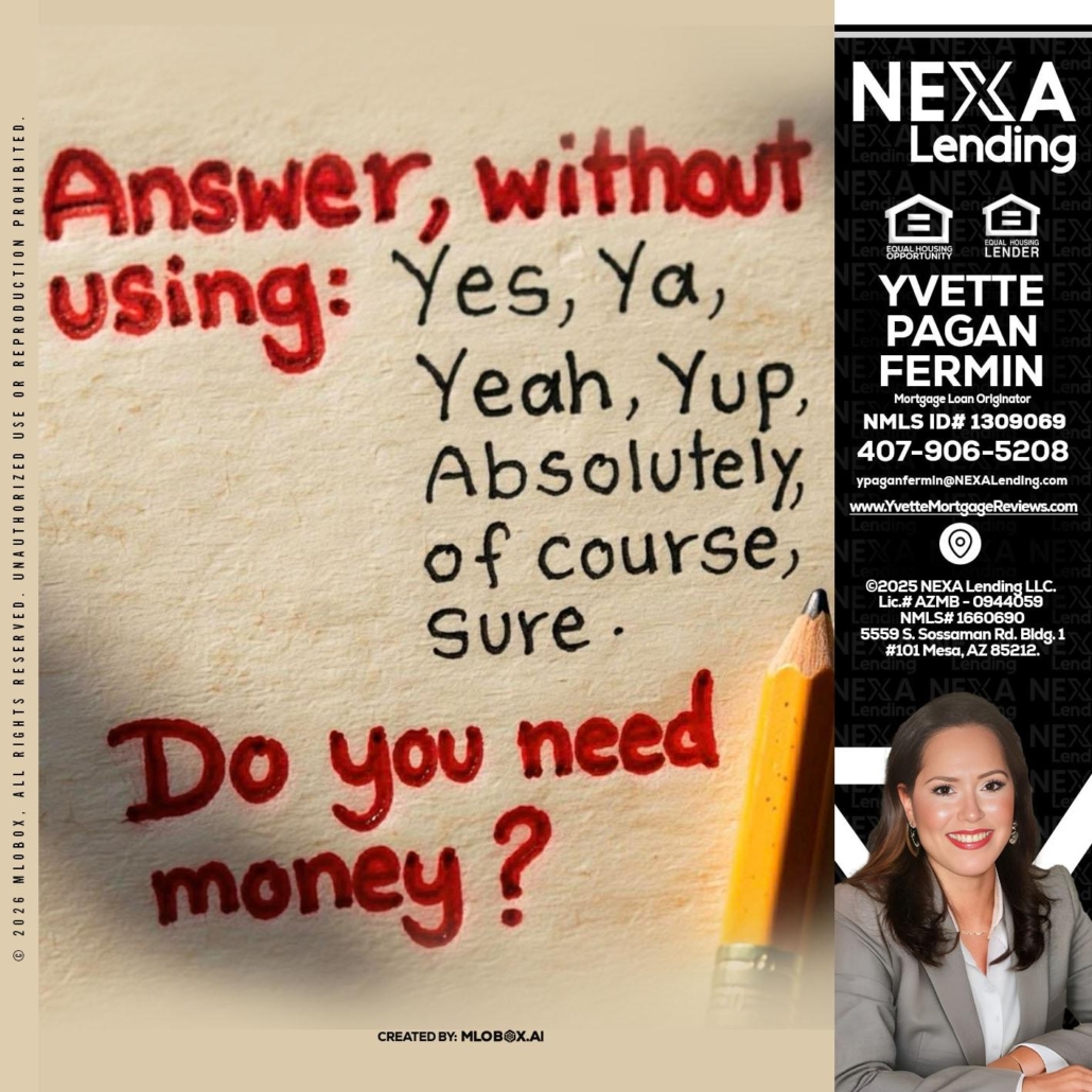 answer without - Yvette Pagan Fermin -Loan OfficerHi, my name is Yvette Pagan Fermin. I’m a Loan Officer with NEXA Lending LLC., offering personalized mortgage solutions, fast customized quotes, great rates and service with integrity.