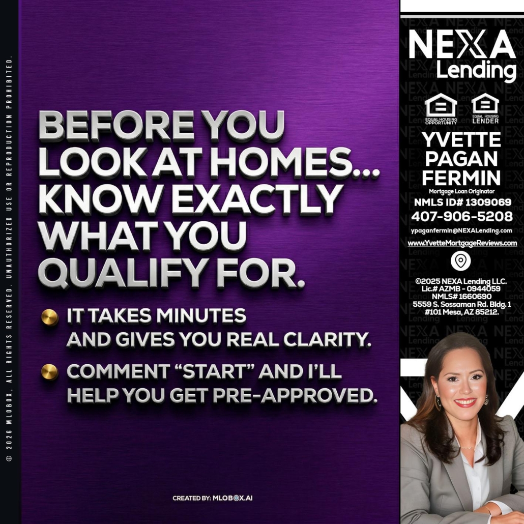 Hi, my name is Yvette Pagan Fermin. I’m a Loan Officer with NEXA Lending LLC., offering personalized mortgage solutions, fast customized quotes, great rates and service with integrity.