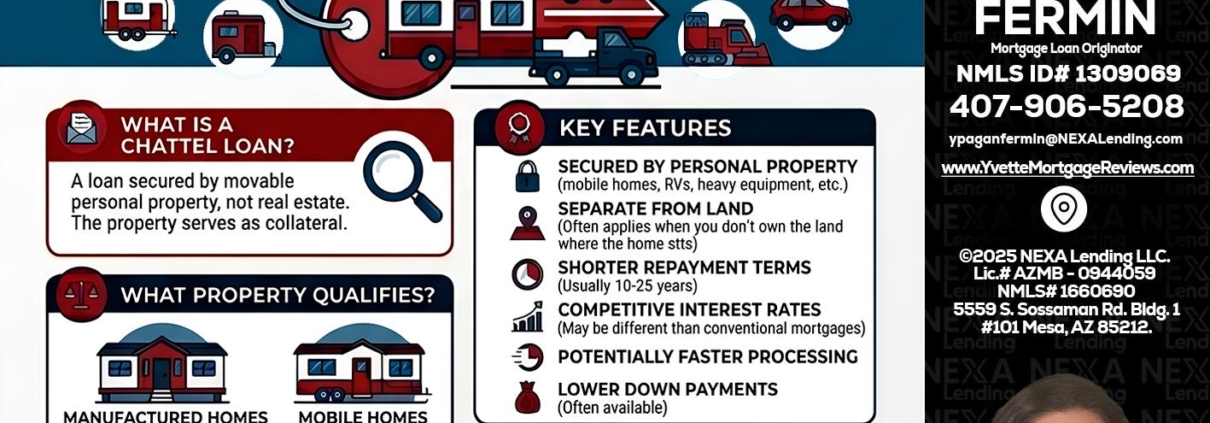 Hi, my name is Yvette Pagan Fermin. I’m a Loan Officer offering personalized mortgage solutions, fast customized quotes, great rates and service with integrity. If you’re interested in learning more about the Chattel loan or any other, just let me know and I’ll walk you through your options.