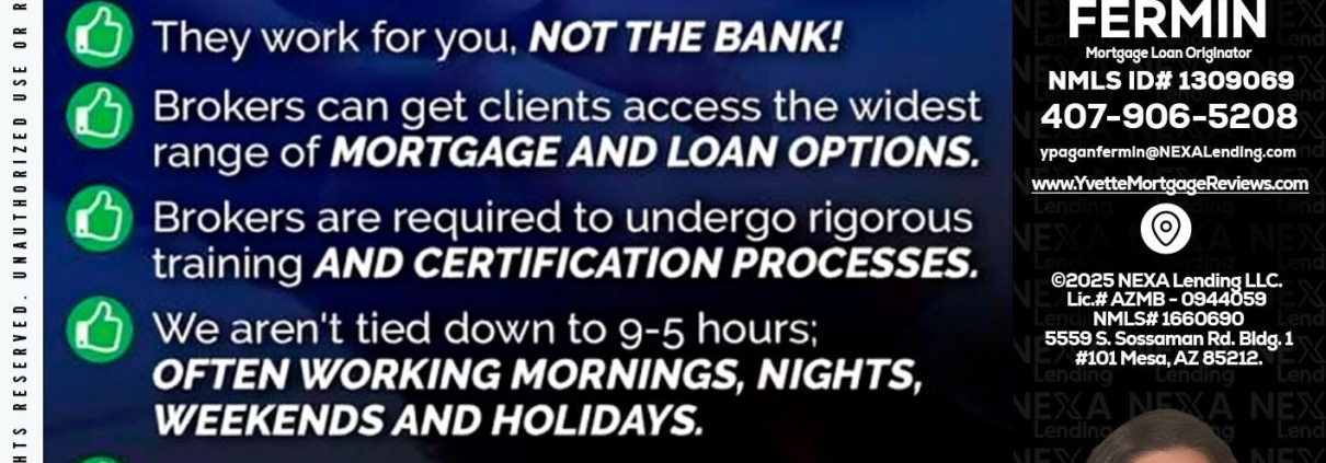 Hi, my name is Yvette Pagan Fermin. I’m a Loan Officer with NEXA Lending LLC., offering personalized mortgage solutions, fast customized quotes, great rates and service with integrity.