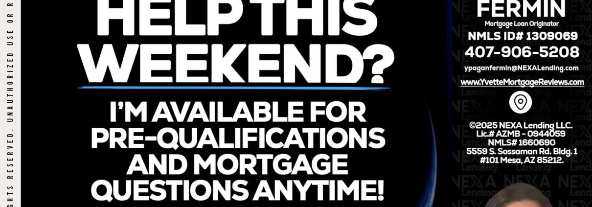 Hi, my name is Yvette Pagan Fermin. I’m a Loan Officer with NEXA Lending LLC., offering personalized mortgage solutions, fast customized quotes, great rates and service with integrity.