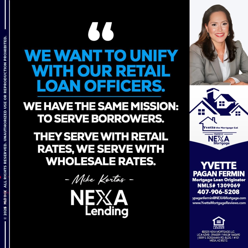 Hi, my name is Yvette Pagan Fermin. I’m a Loan Officer with NEXA Mortgage LLC., offering personalized mortgage solutions, fast customized quotes, great rates and service with integrity.